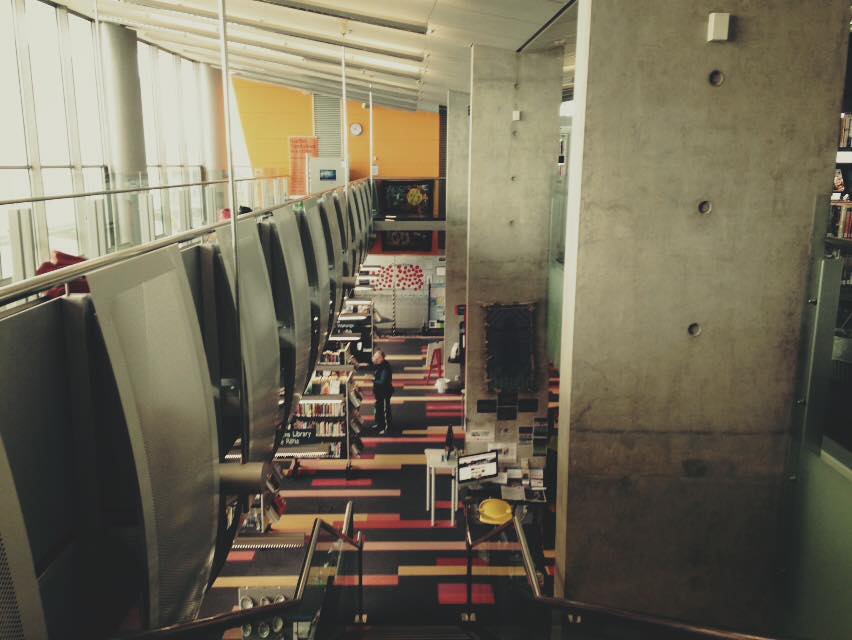 バスのなかで知り合ったGregさん、この辺に住んでいるので図書館内でも偶然再会したのですが、その人いわくこの作者は毎週末きて描いていくらしい。