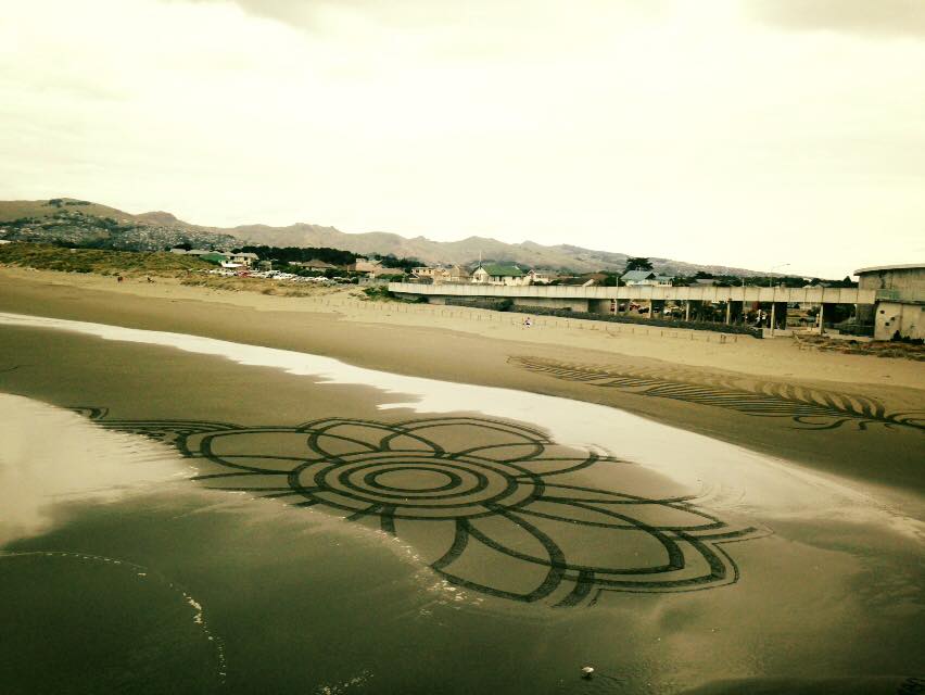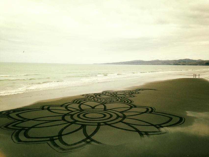 そんな海、日曜に来たときは、地元の人が砂浜に絵を描いていました。