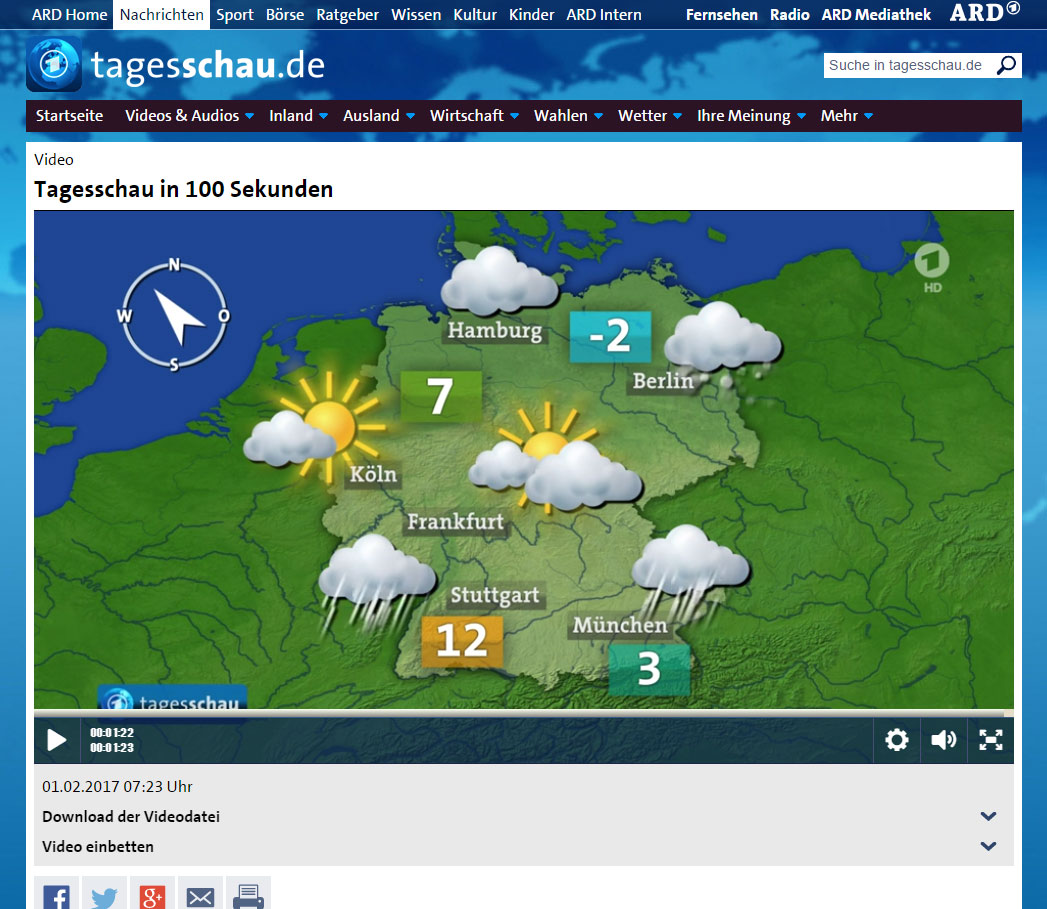 その一環で最近Tagesschauというニュース番組のサイトで動画を毎日みるよう心掛け始めました。