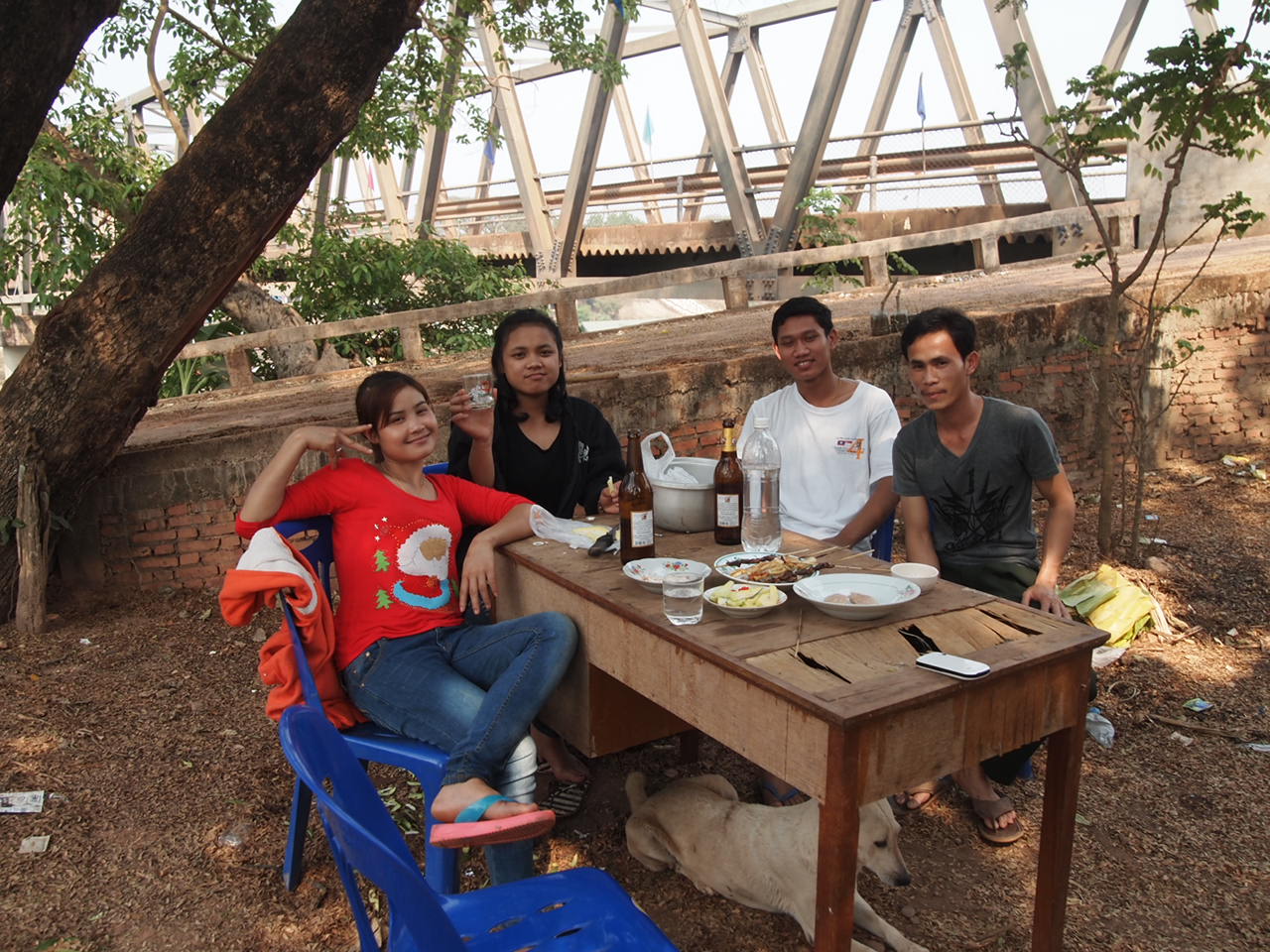 ↑ターンゴーンTha Ngonという村で川に浮かぶレストランで川魚を食べた後、帰りのバス待ち(ビエンチャンまで1時間くらい、未舗装の道をガッタガッタひたすら行く)をしようと思ったら手招きしてくれてプチ宴会?に混ぜてくれた青年たち。英語もほとんど通じないのに。やさしい、ゆるい… いい笑顔。しあわせとは一体なんでしょう。