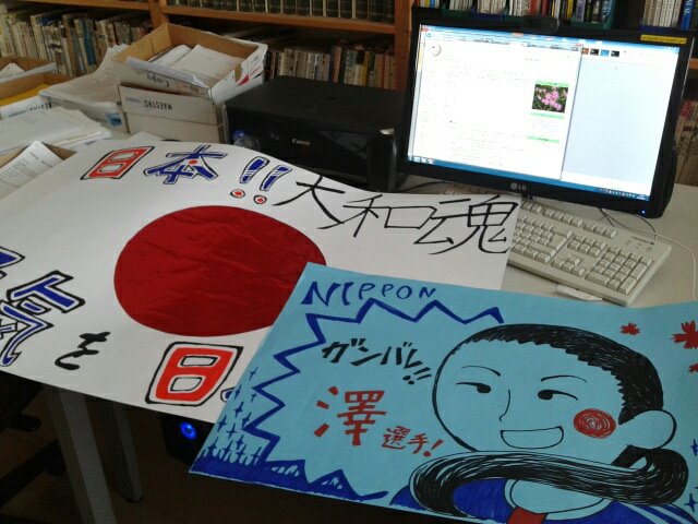 こちらは同じく2012年、ロンドンオリンピックのときに作った応援旗(紙だけど)。