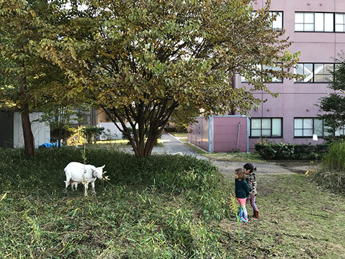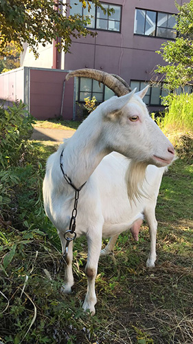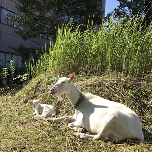 筑波大学で実験中の「多文化共生ガーデン」プロジェクトの一環で、ヤギ(メスヤギ×2、子ヤギ×1)を3日間お呼びしました(研究費で)。