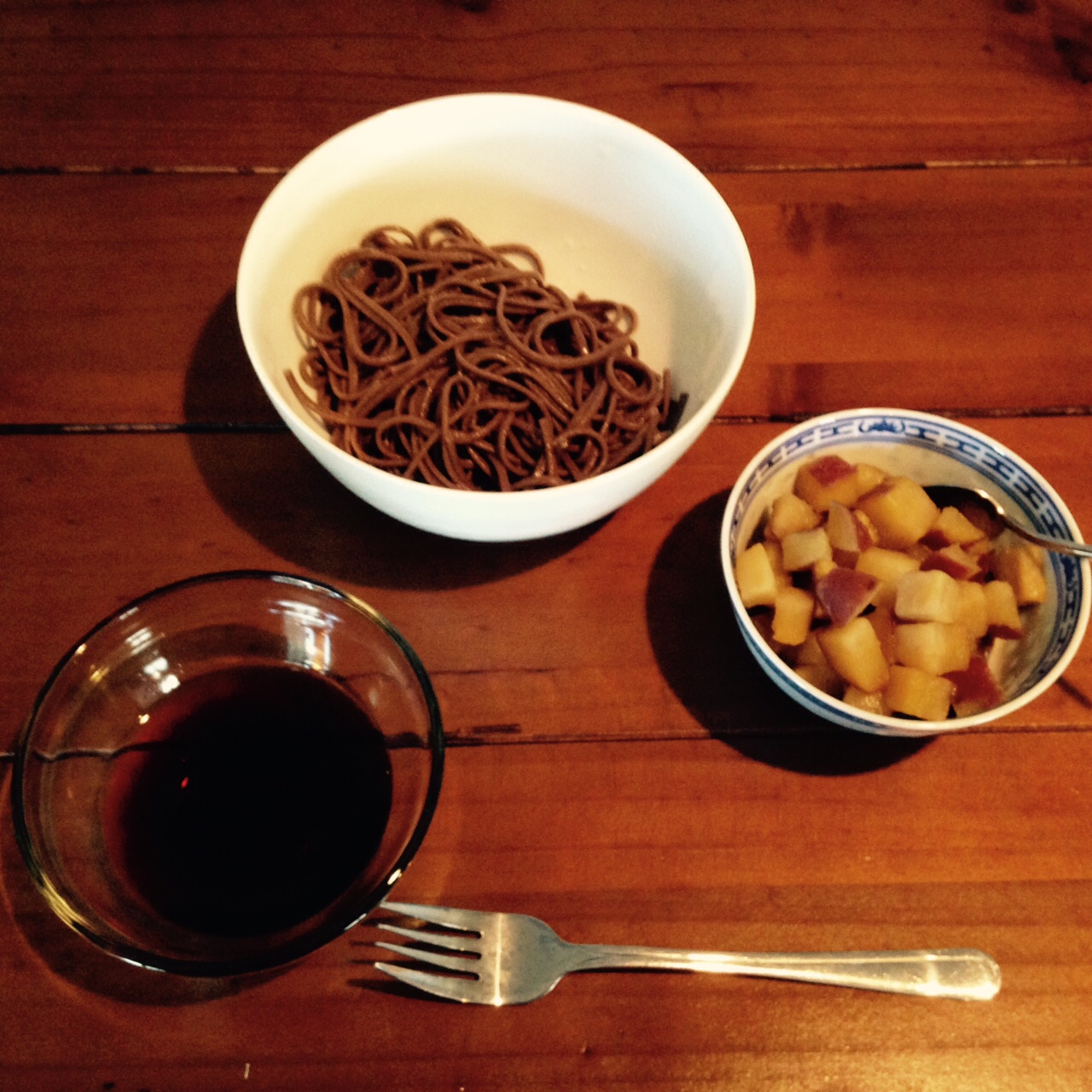 Kumeraは砂糖とバターで煮たらとってもおいしかった。固茹で気味になってしまった蕎麦と一緒にいただいた。